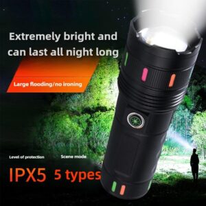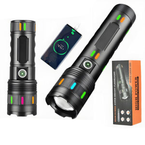 এই সুপার পাওয়ারফুল অ্যালুমিনিয়াম অ্যালয় ফ্ল্যাশলাইটটি আপনার রাতের নিরাপত্তা ও আউটডোর ব্যবহারের জন্য একদম পারফেক্ট। এর হাই-ইনটেনসিটি White Laser LED আলো 800 মিটার পর্যন্ত লং রেঞ্জ প্রজেক্ট করতে সক্ষম। মজবুত মেটাল বডি, ডিজিটাল ব্যাটারি ডিসপ্লে, নাইট গ্লো স্ট্রিপ এবং Type-C রিচার্জ সাপোর্ট—সব মিলিয়ে এটি একটি প্রিমিয়াম ও দীর্ঘস্থায়ী টর্চ।